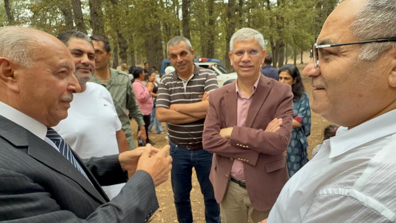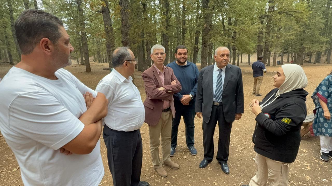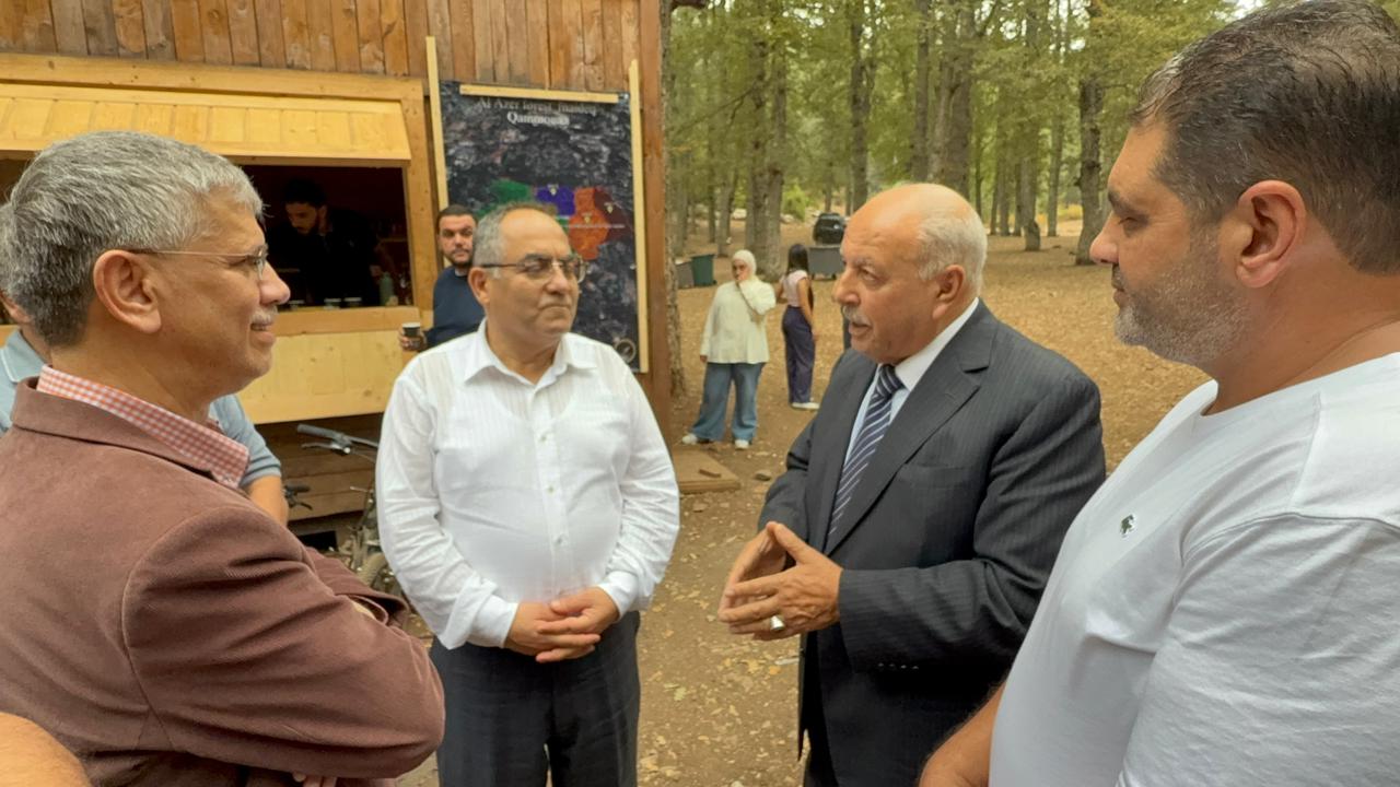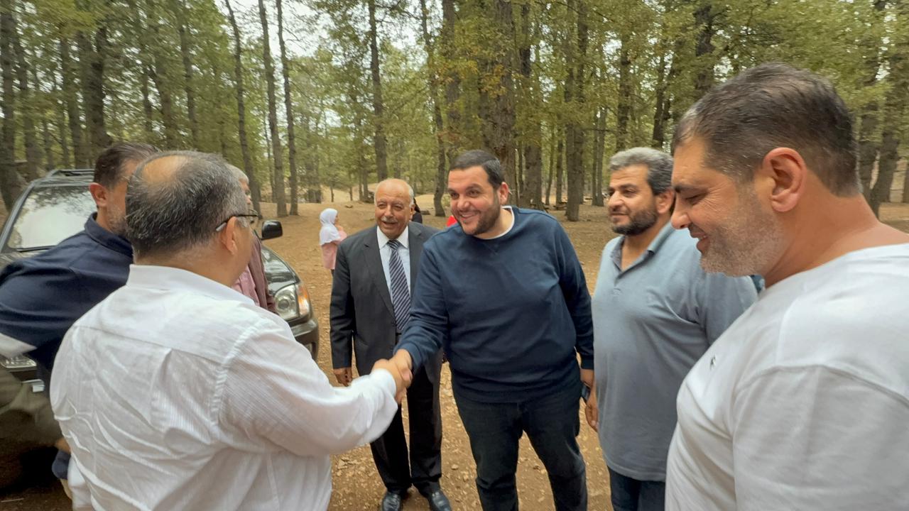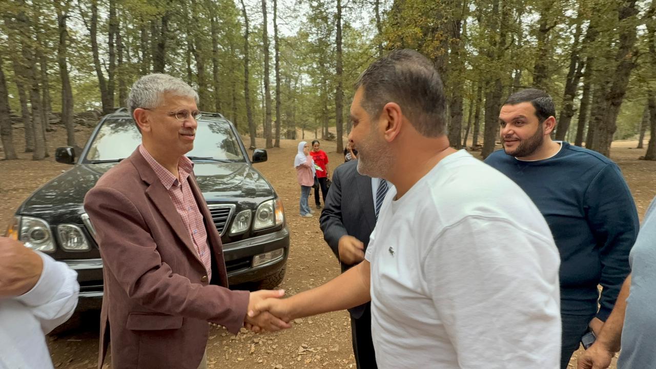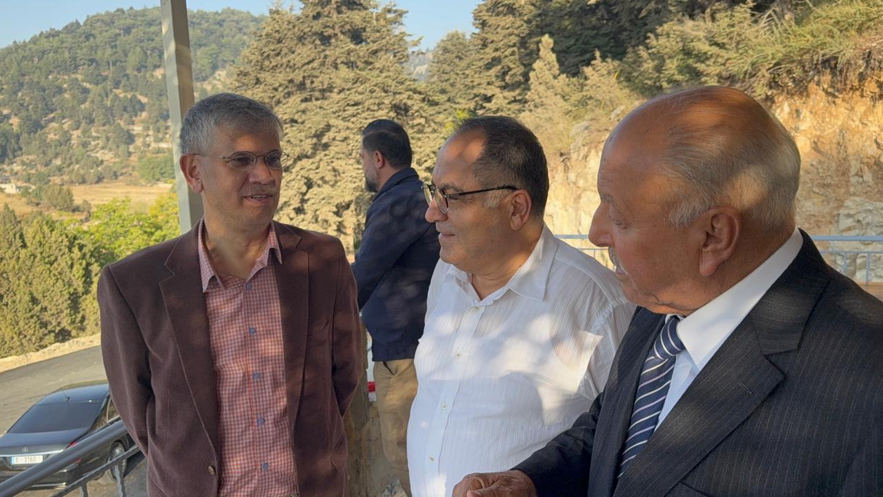 Ambassador Athar and Ali El Abdallah concluded the series of extensive meetings with a luncheon at the residence of Ali El Abdallah in Tekrit. The gathering was attended by: Member of the Islamic Sharia Council, Captain Mohamad Murad; Major General Mahmoud Al Asmar; President of the Union of Municipalities of Nahr Al Astawan, Omar Al Hayek; President of the Union of Municipalities of Al Shuft, Tony Abboud; Mayor of Tekrit, Dr. Hala El Abdallah; Mayor of Ayat, Eng. Ahmad Al Hajj and his wife; Mayor of Al Shakdouf, Paul Saoud; Director of the Tekrit Vocational Center, Mr. Zia Al Sanei and his wife; former Akkar region official, Kataeb activist and political figure Mr. Robert Nachar and his wife; Mr. Fouad Zakaria; Dr. Samar Al Bitar; Dr. Haitham Taleb and his wife; Ms. Manal Mahmoud; Pharmacist Jamil El Abdallah; Mr. Khaled Al Shami; and a number of religious leaders, dignitaries, and notable figures, in the presence of Ambassador Athar’s wife, Mr. El Abdallah, and his family. Following the luncheon, they visited the Al Azar and Al Qammoua forests, where they were received by Ahmad Abdo Al Ba’rini and Mayor of Fnaidek, Houssam Joud. The delegation toured the forest and the Al Qammoua area, learning about its environment and its importance to Akkar and northern Lebanon.